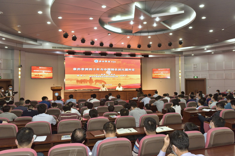 报告会上,刘贵今以亲历者、见证者的视角,结合长期从事非洲国家外交工作的亲身经历,用生动形象的事例与师生分享了中非的友谊故事,带领师生了解了中非关系的发展历程、中非友谊的深化之路,向师生讲述了中国在参与非洲建设、推动非洲和平发展,构建人类命运共同体上的努力、付出和成绩。