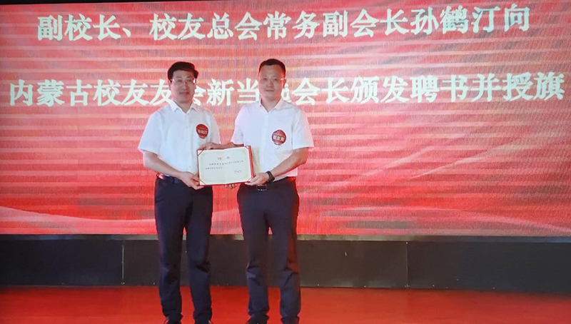 孙鹤汀为新当选内蒙古校友会会长颁发聘书