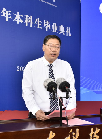 曾庆田对全体毕业生说,山海自有归期,风雨自有相逢,母校永远是你们温暖的家,是你们远航归来的港湾,愿“惟真求新”的校训照耀你们一路向前,愿“坚韧不拔 发奋图强”的科大精神伴随你们奔赴山海。