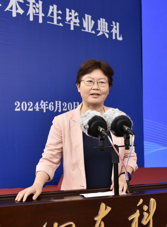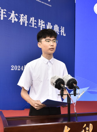 刘音饱含深情地表达了对同学们真挚祝福和依依惜别之情,希望毕业生涵养报国之心、坚守勤学之心、永葆健康身心。王韶阳分享了自己在科大的成长与收获和奋发作为、追求卓越,表达了将科大校训、科大精神融入新征程的信心和决心。曲莲萍对学校和老师给予孩子的辛勤培育和帮助表示感谢,祝愿毕业生一帆风顺、前程似锦。王琦深情回顾了在母校奋斗成长和成才的故事,表达了对母校的感恩与祝福之情。