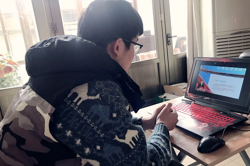 学生在家收看疫情防控思政大课