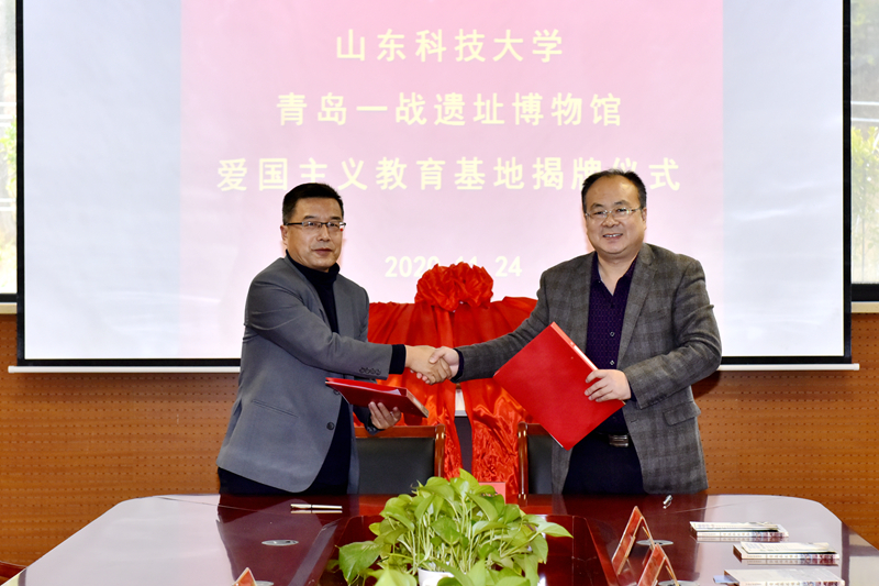 尹华在致辞中对青岛一战遗址博物馆给予学校工作的鼎力支持表示感谢。他表示,学校在青岛一战遗址博物馆建立的爱国主义教育基地是一个发展的平台,双方在人才培养、科技合作、社会实践等方面有很多契合点,要加大合作力度、拓宽合作广度,探索合作新模式,为基地发展注入更多的发展动力;基地是一个创新的平台,基地的建设为创新思想政治工作模式提供了可能,要及时总结经验,探索建立适应新时代发展和学生认知结构的实践转换机制,解决好当代大学生“素质+能力”的提升问题,踏出新路子,立出新标杆。
